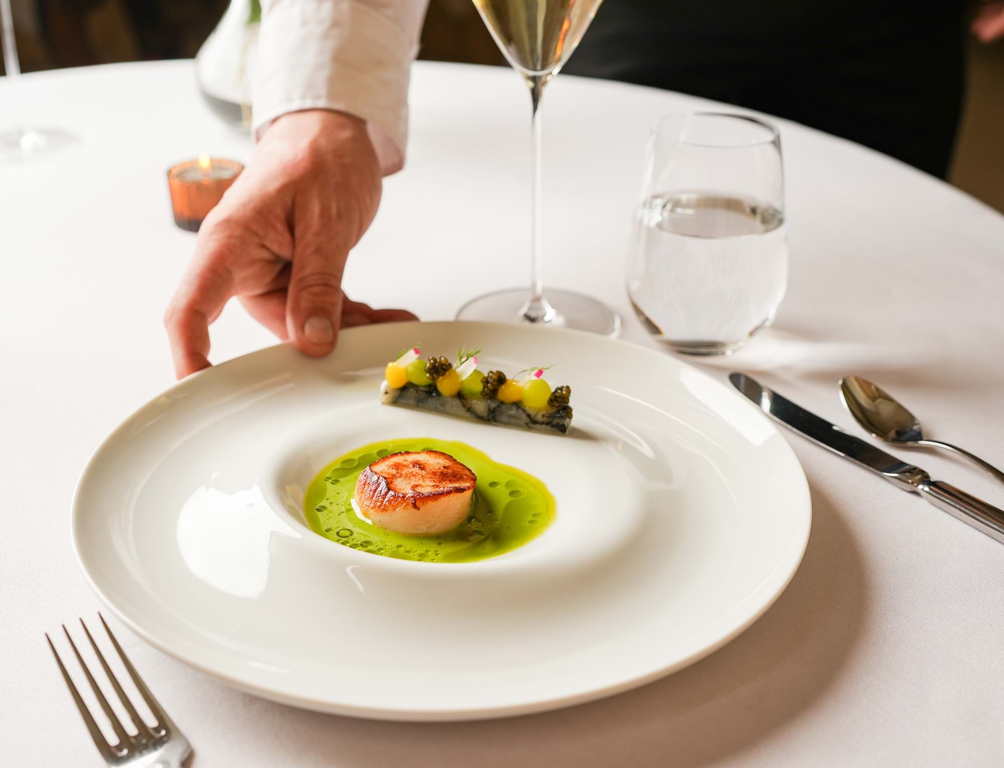 • A glass of chilled Champagne with dinner on your first evening