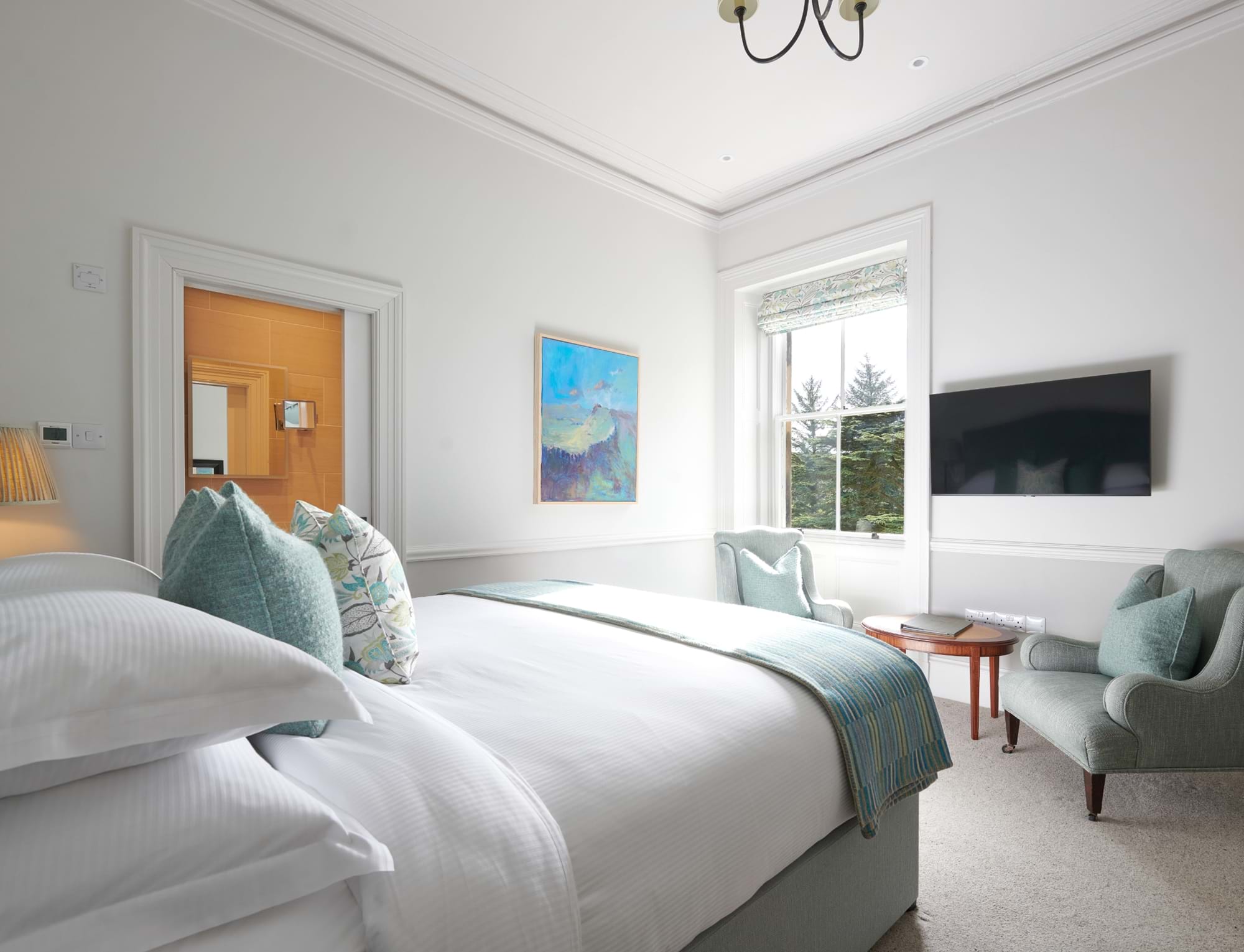 Each room is individually decorated, with elegant fittings, ultra-modern bathrooms and beautiful views of the gardens below.